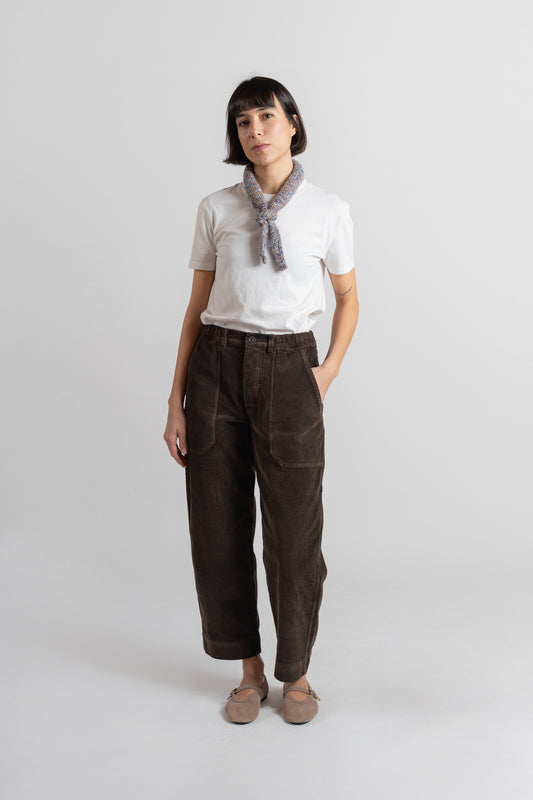 Il velluto Laurels Apron è composto per l’80% da cotone vergine e per il 20% da cotone riciclato certificato GRS, una scelta che unisce qualità e rispetto.