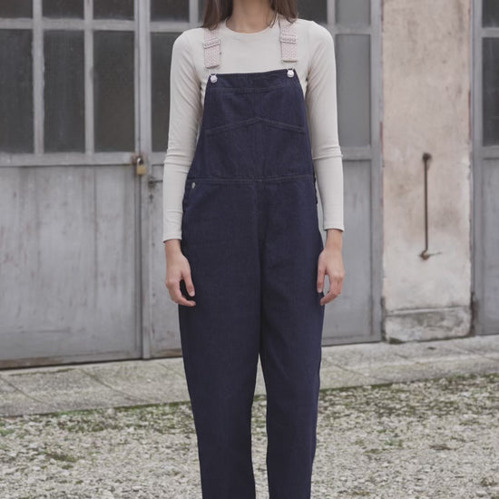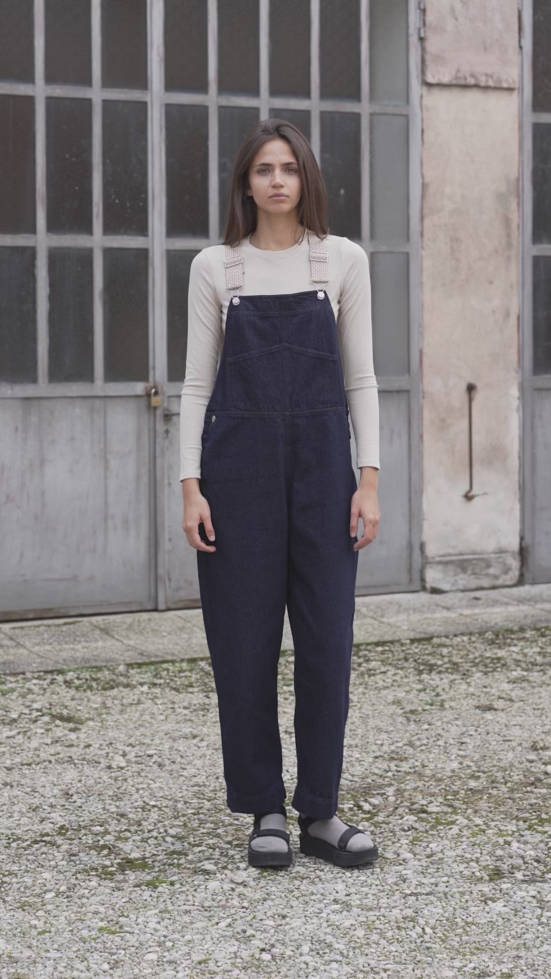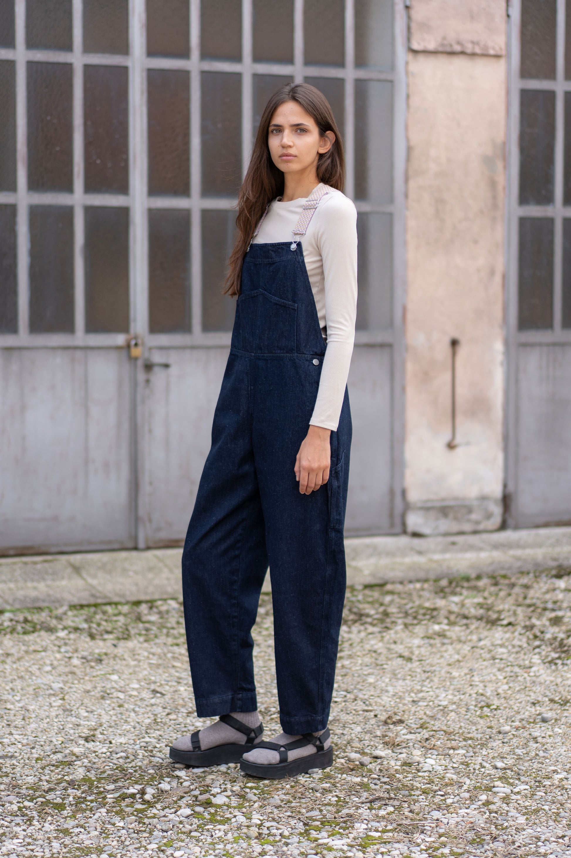 Die Latzhose hat eine bequeme Passform in der Taille und an den Hüften. Sie ist mit verstellbaren Trägern ausgestattet, die es ermöglichen, die Länge anzupassen.Die Hose ist an den Beinen weit und verjüngt sich leicht zum Ende hin.