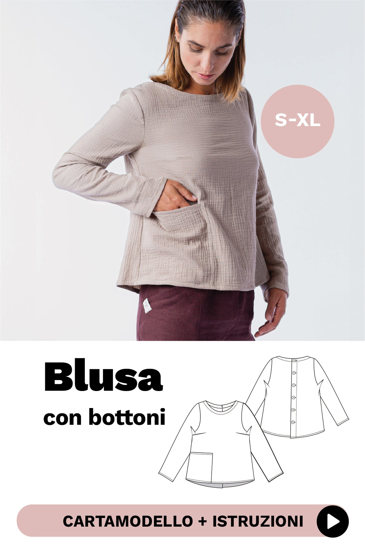 Blusa con bottoni: Cartamodello + Tutorial video + Tutorial illustrato