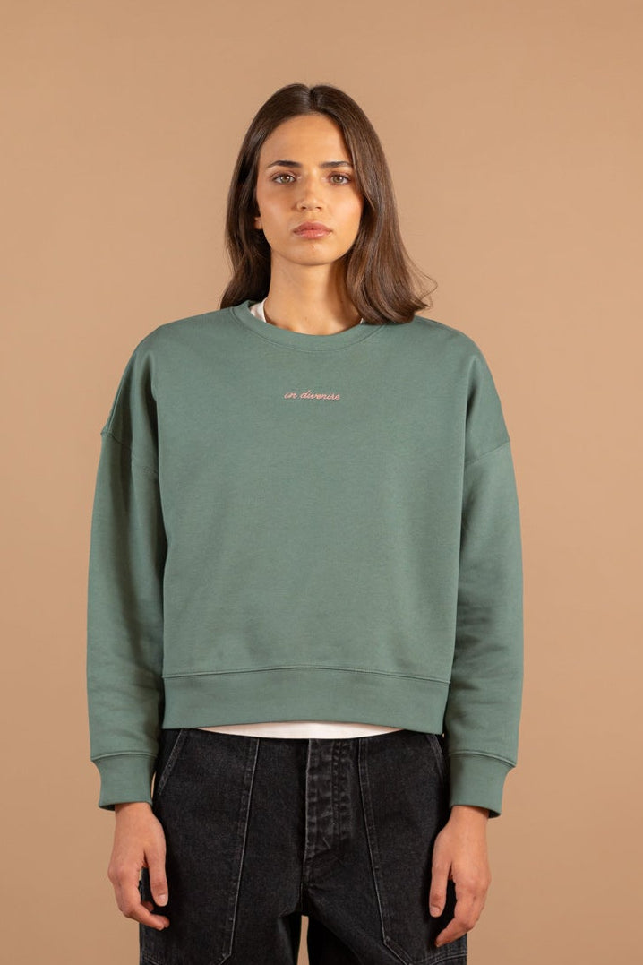 La felpa è realizzata da un fornitore esterno certificato GOTS, OEKO-TEX e membro della Fair wear foundation (consulta le certificazioni a questo link). Il ricamo viene eseguito internamente.