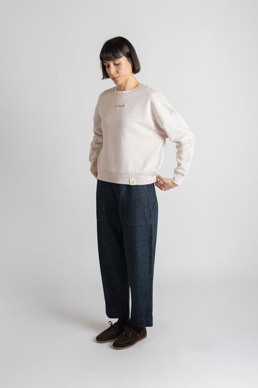 • Felpa girocollo garzata in cotone biologico