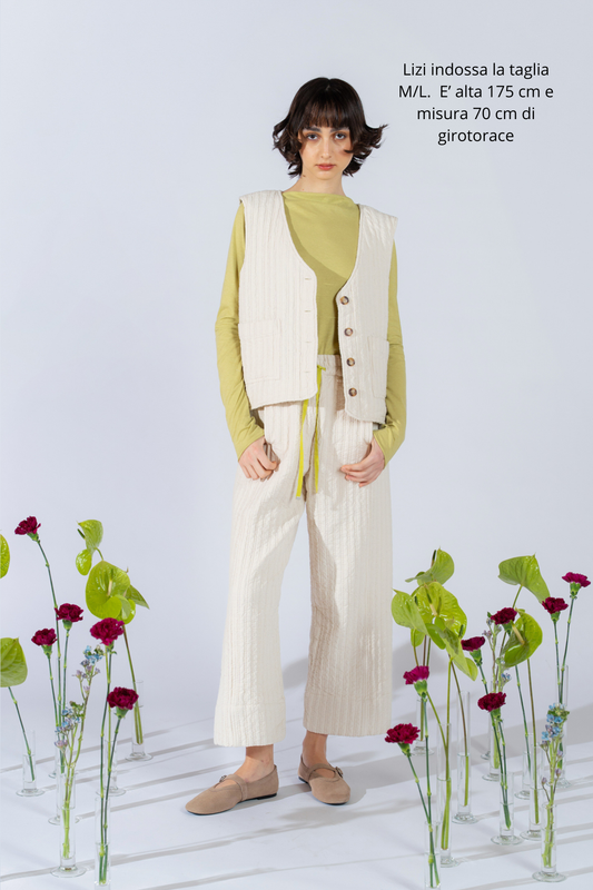 I capi sono prodotti interamente in Italia: selezioniamo filati di qualità e seguiamo ogni fase, dalla tessitura alla finitura. Il risultato è un prodotto unico, curato nei minimi dettagli.