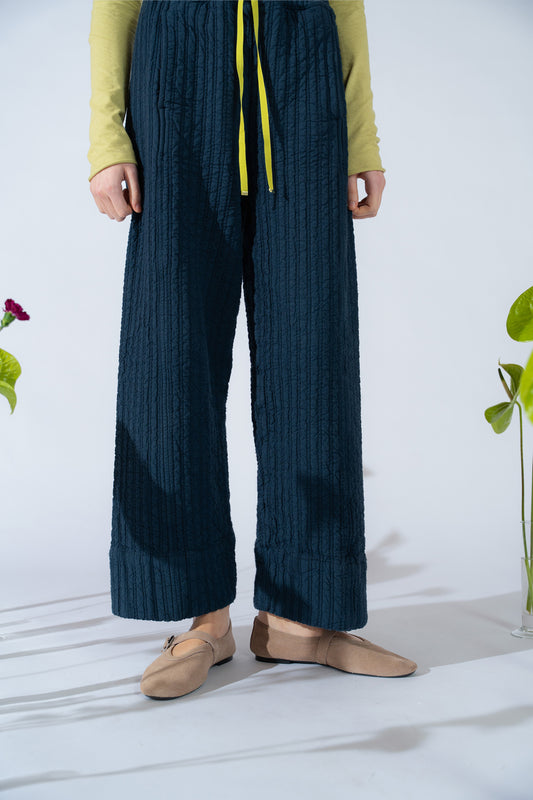 E' dotato di elastico in vita, grazie al quale si adatta alla corporatura. Ha un vestibilità ampia sulla gamba che chiude leggermente verso il fondo. Il pantalone può essere portato con o senza risvolto.