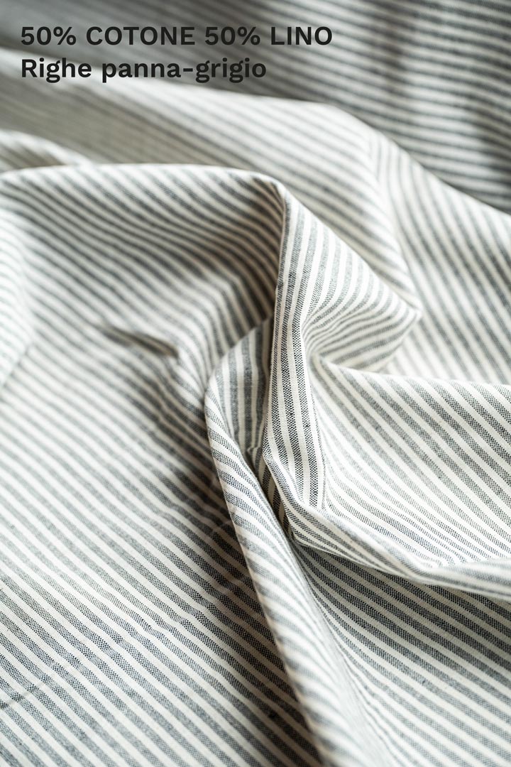 Noi realizziamo il modello in Canapa-Lino, ma è perfetto anche in qualsiasi altro tessuto naturale, ad esempio 100% lino per un aspetto rustico e vissuto o, perché no, puoi anche riciclare qualche tovaglia in cotone o tessuto vintage!
